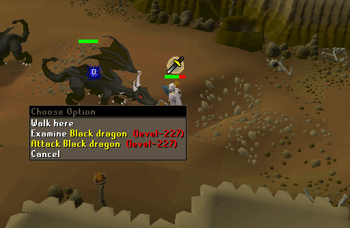 Turn on protect from melee and kill a Black dragon. Pick up the token it drops and leave the chicken's cave through the portal located south of the dragons.