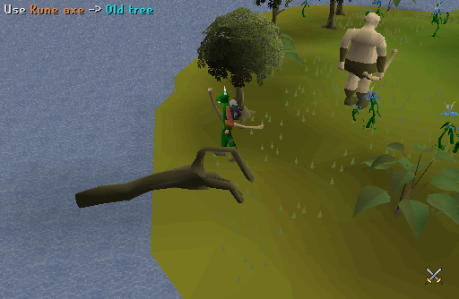 Now go down the nearby ladder and speak to the Goblin cook. He'll tell you to get him charcoal for a new food. Give some charcoal to the chef and he will place it in his cauldron and you will get to see a hilarious cut-scene of his 'cooking'.